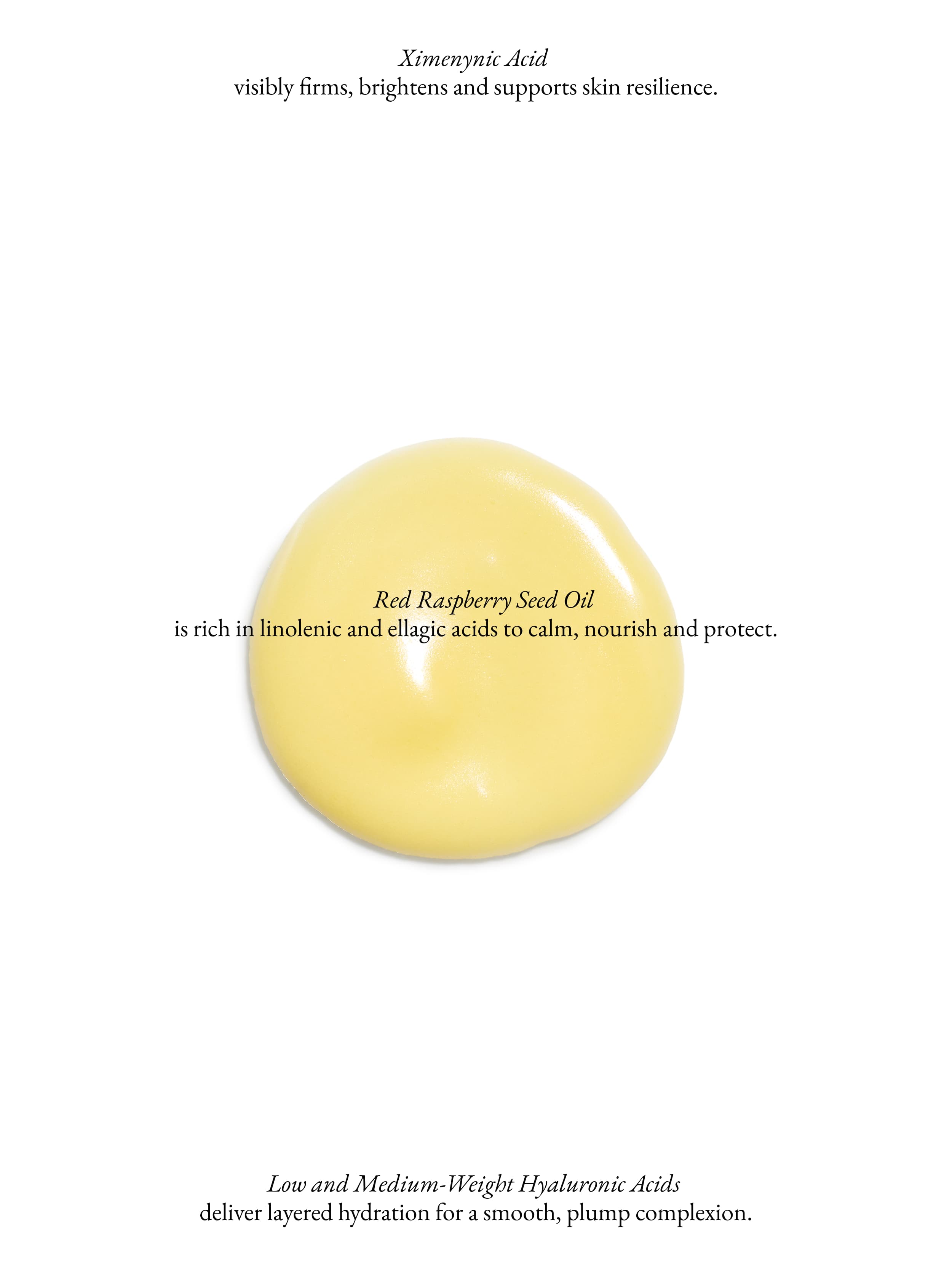 This lightweight, creamy serum is fortified with low and medium weight hyaluronic acids, plus nutrient-dense fruit and floral oils to hydrate and nourish skin. This unique product is a melding of textures—more lightweight than your average cream, but creamier than your average serum. It’s a true multitasker—it hydrates, prevents visible signs of aging, soothes, firms, and brightens thanks to skin nourishing acids like ximenynic acid, ellagic acid, hyaluronic acid, and phytosterols.