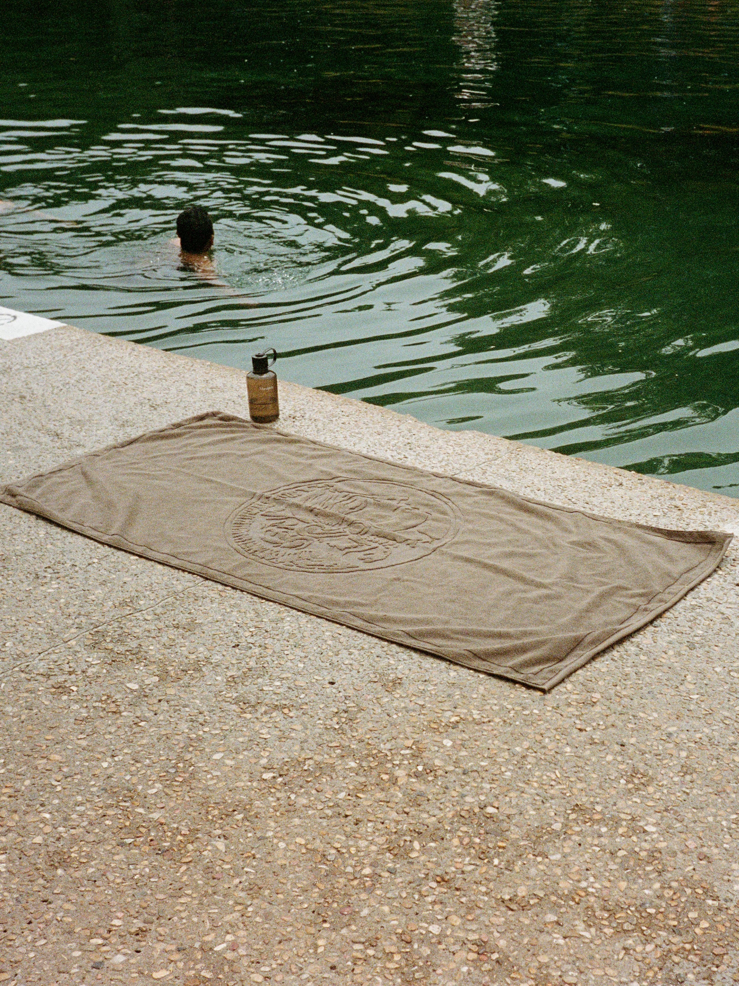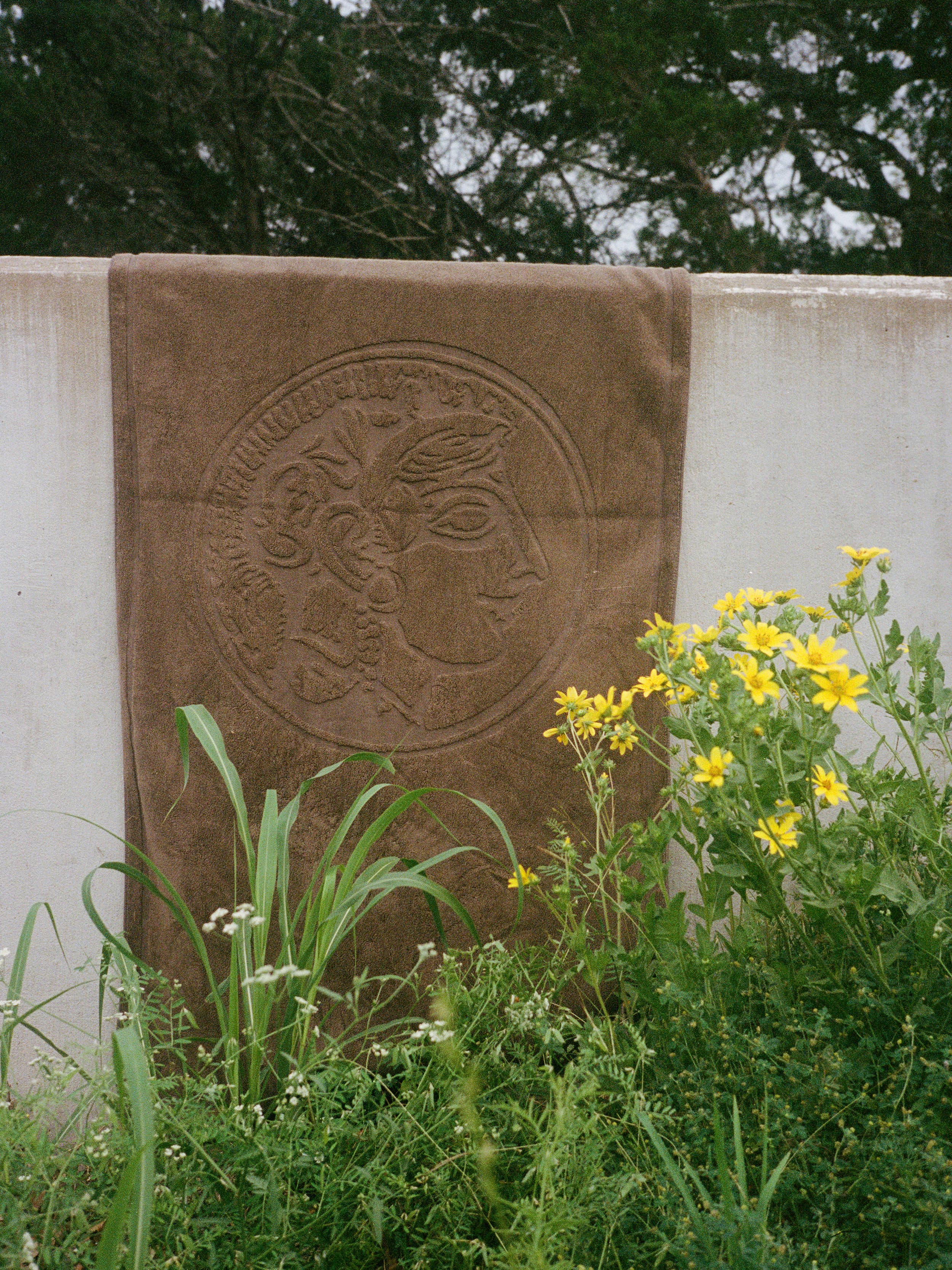 Custom large beach towel perfect for a day spent at the beach or a bath at home. Rectangular terrycloth towel featuring our Athena seal. Athena is an ancient Greek goddess associated with wisdom, warfare, and handicraft. Made in USA.