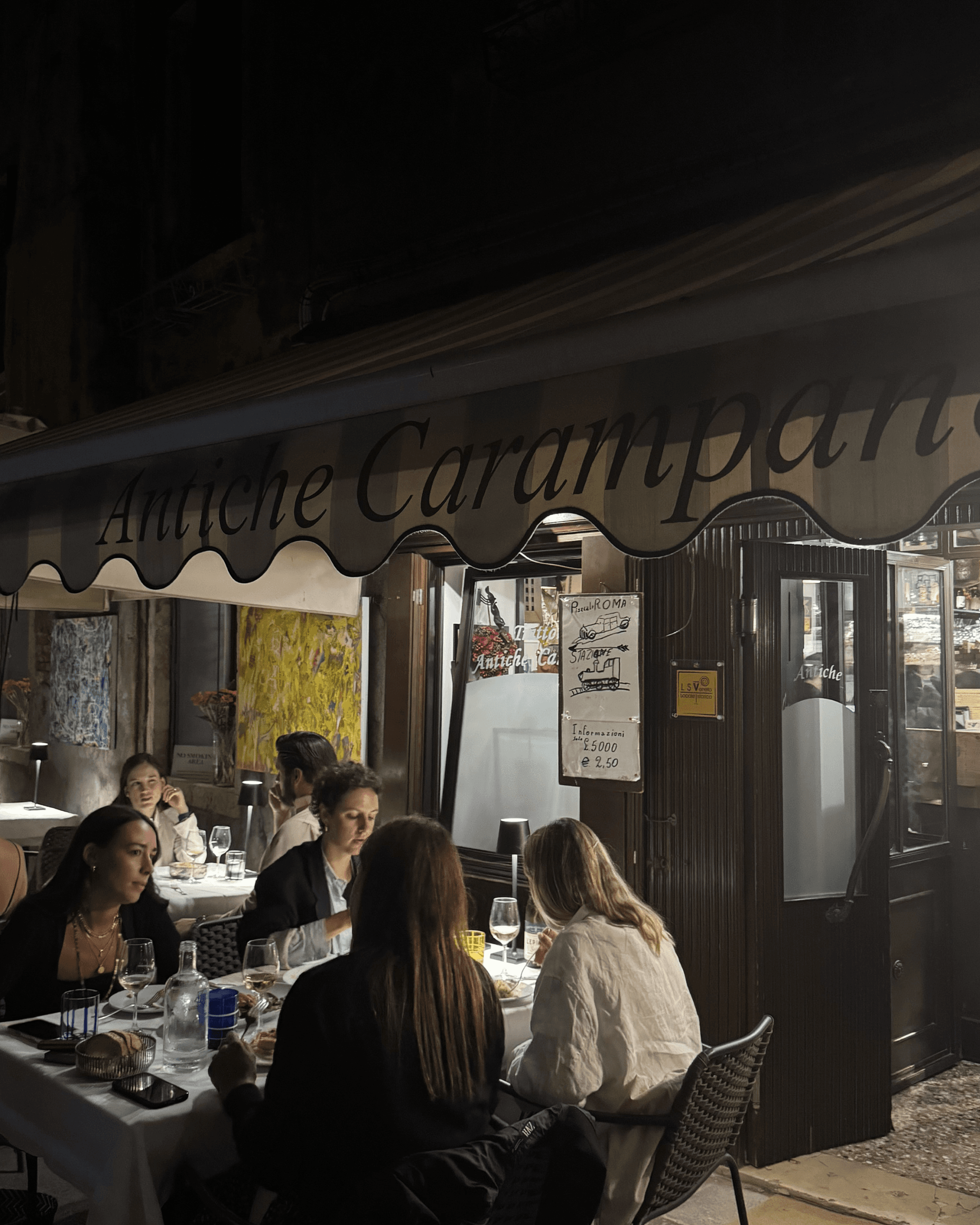 Our team ate so many delicious meals during our stay in Venice. A highlight of the trip was Antiche Carampane; a very traditional Italian trattoria with a very IYKYK vibe. Sofia ended up giving us her reservation and it, unsurprisingly, was the best meal of the trip. I wouldn’t miss Harry’s Bar for a late night drink and the best people watching. The terrace at The Gritti Palace for a beautiful, lively lunch on the canal.