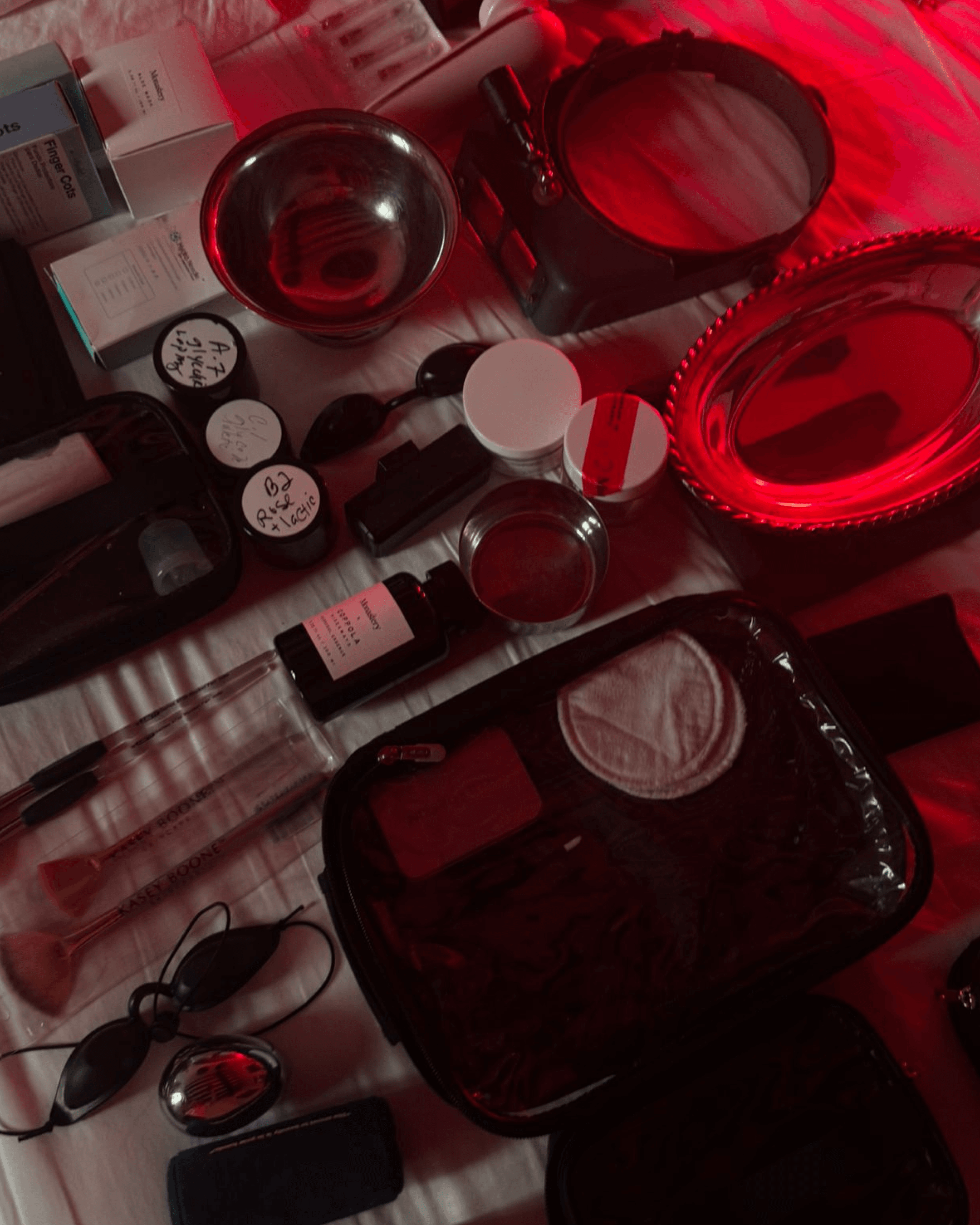 The products I kept reaching for were The Deep Red LED mask for its ability to brighten in just 5 minutes, Attar Floral Repair Concentrate for its lasting power, Rose Cleansing Oil to remove heavier makeup and SPF while maintaining skin health, and our soon to launch serum for its ability to lock in moisture. I also had my Coppola Hideaways Floral Essence on me at times for a quick pick me up for my own skin.
