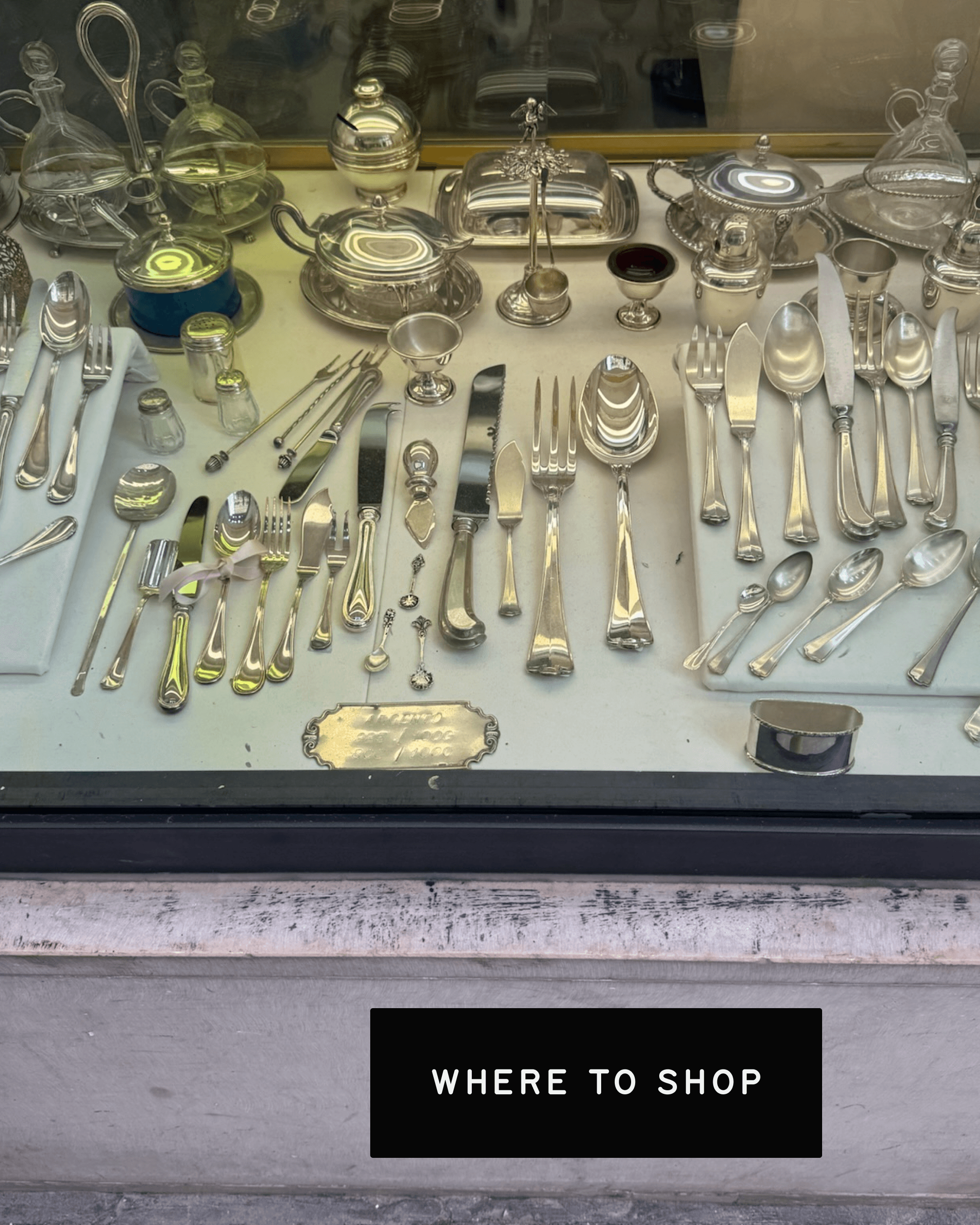 Venice is a treasure trove of antique shops mixed with modern luxury shops. A perfect city for meandering around and stumbling upon gems. Laguna B is the spot for the best blown glassware. I’m always on the hunt for glasses for the spa so made sure to pop in. Piedaterre for classic Venetian slippers. I'd go into pretty much every antique store I saw and got some really amazing pieces for the Monastery spa.